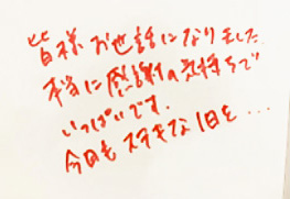 「皆様お世話になりました。本当に感謝の気持ちでいっぱいです。今日もステキな1日を…」